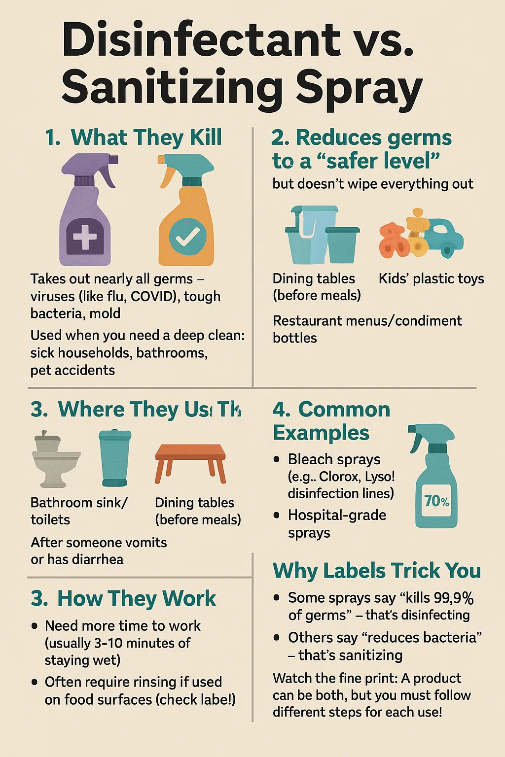 Ecco la differenza nel mondo reale tra spray disinfettanti e spray igienizzanti: